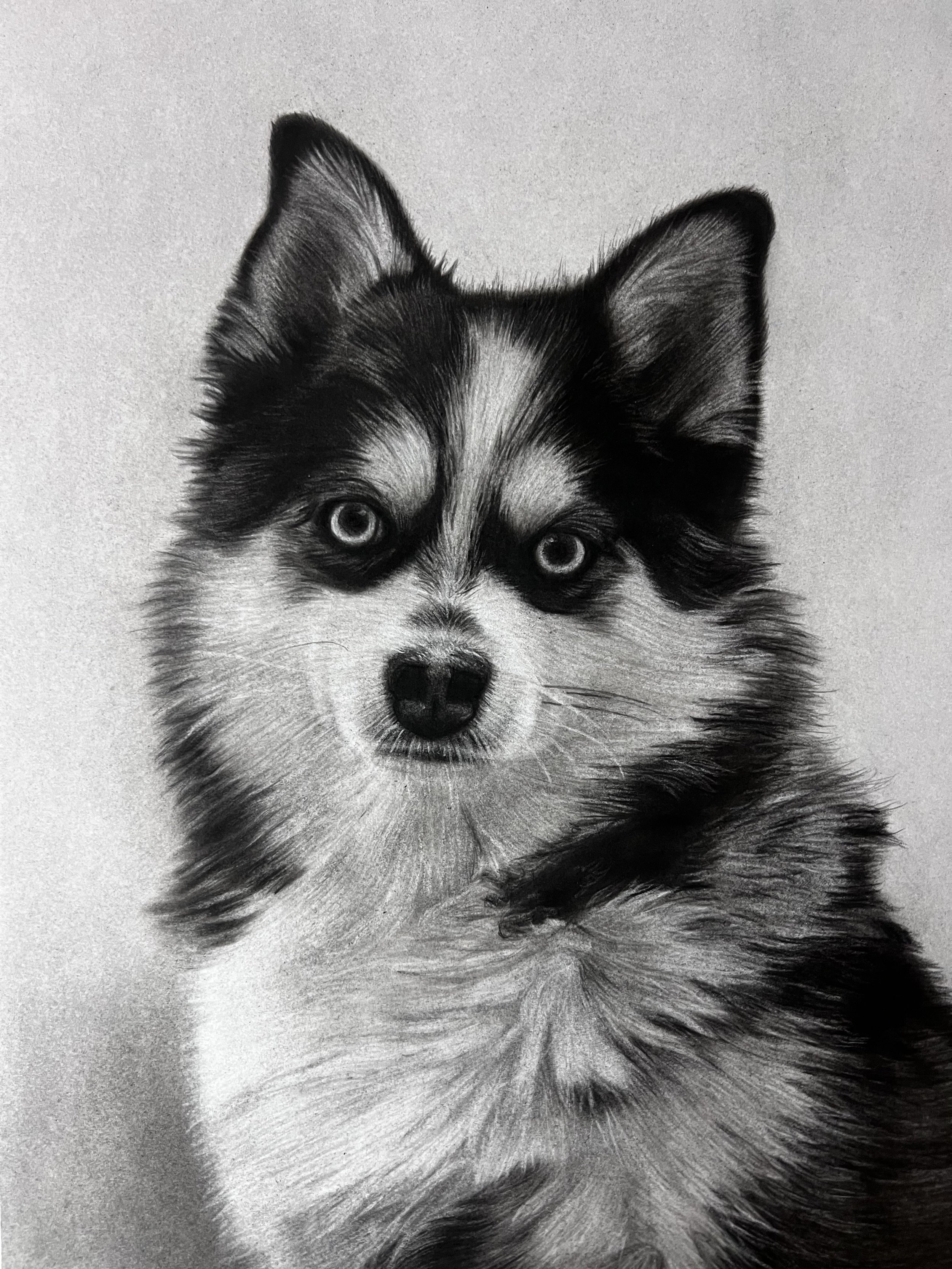 Je propose de créer pour vous une œuvre personnalisée sur le même principe : votre regard et celui de votre animal, réunis dans une même composition. L‘œuvre sera réalisée au graphite et au fusain sur du papier de haute qualité.